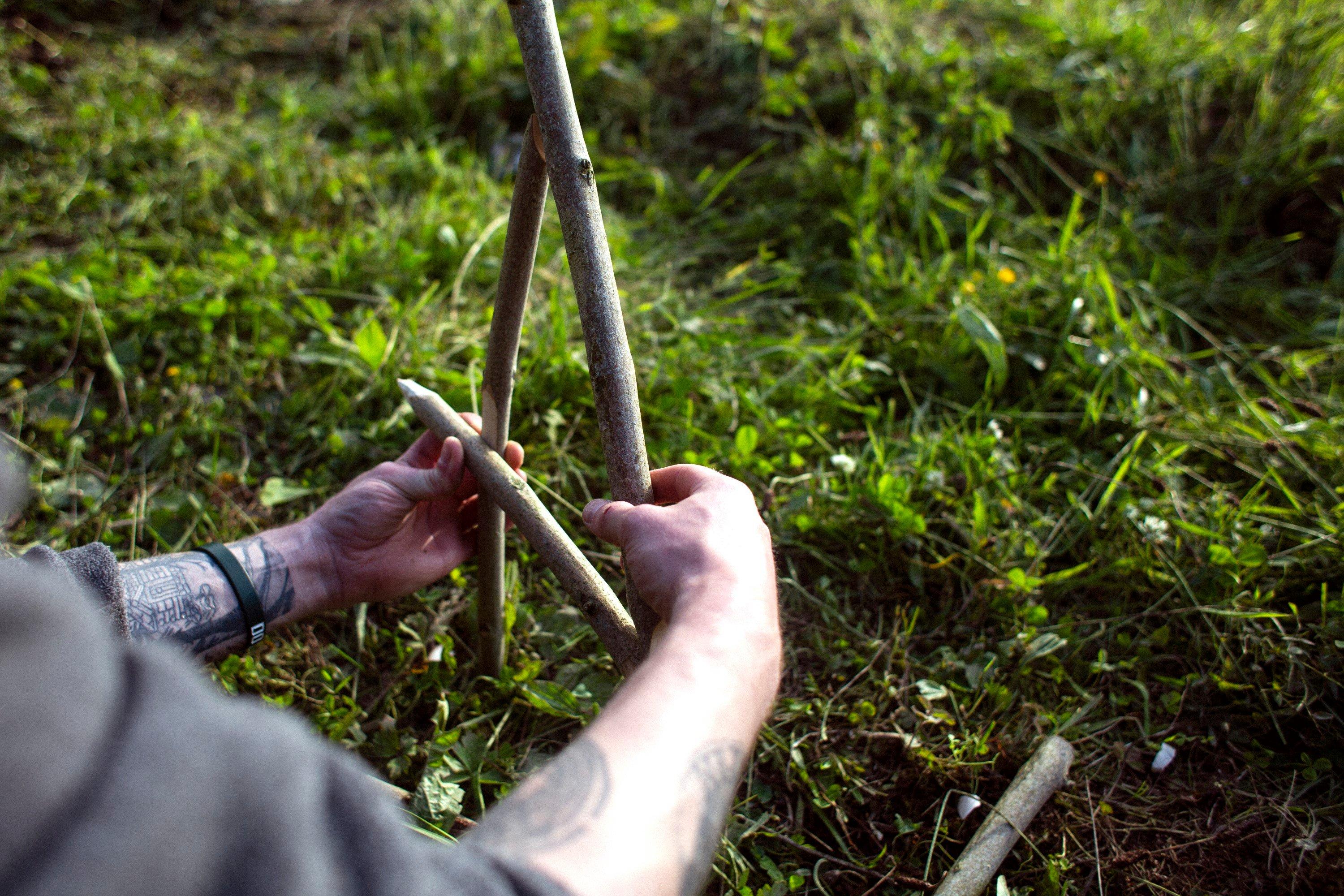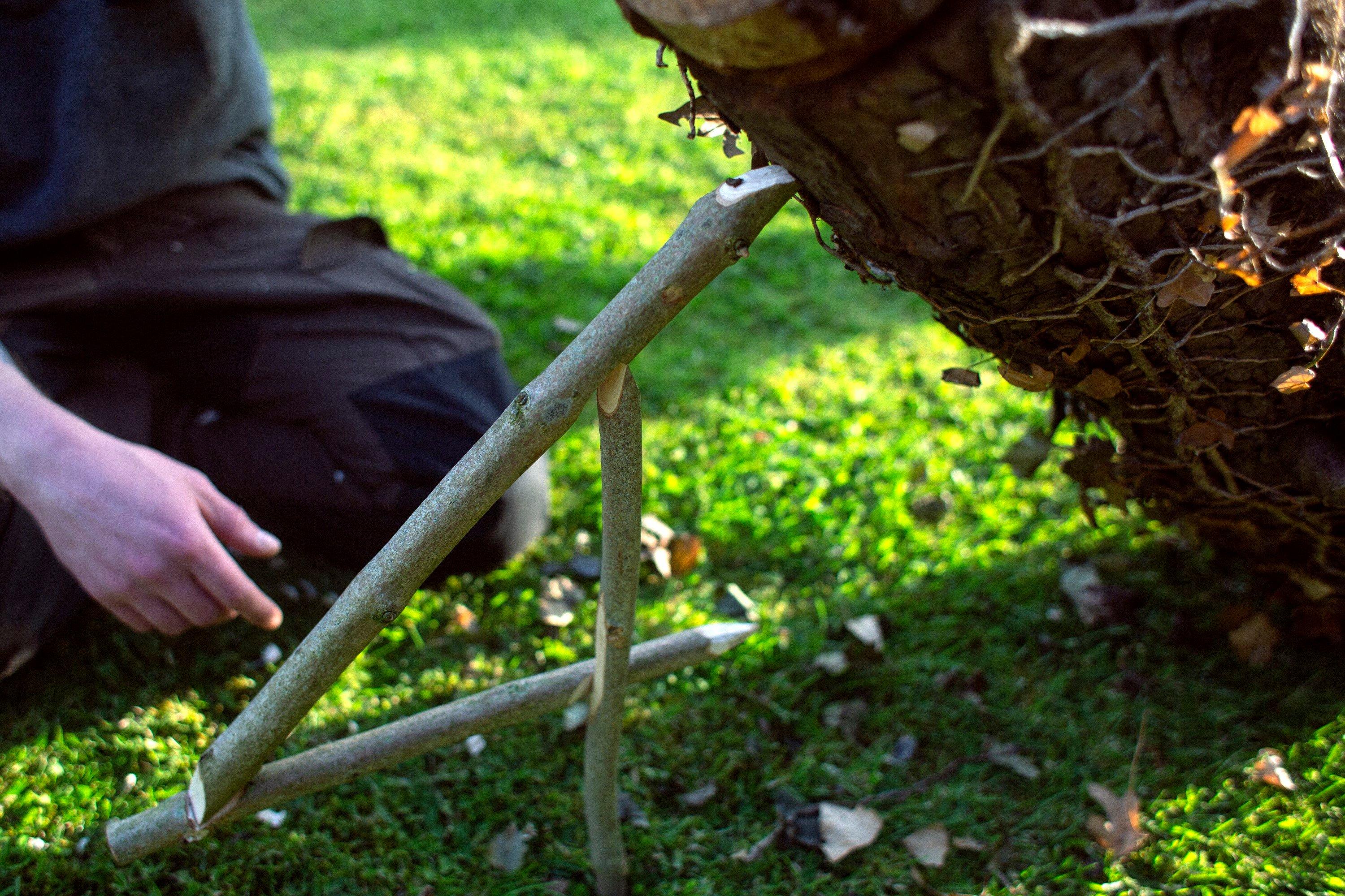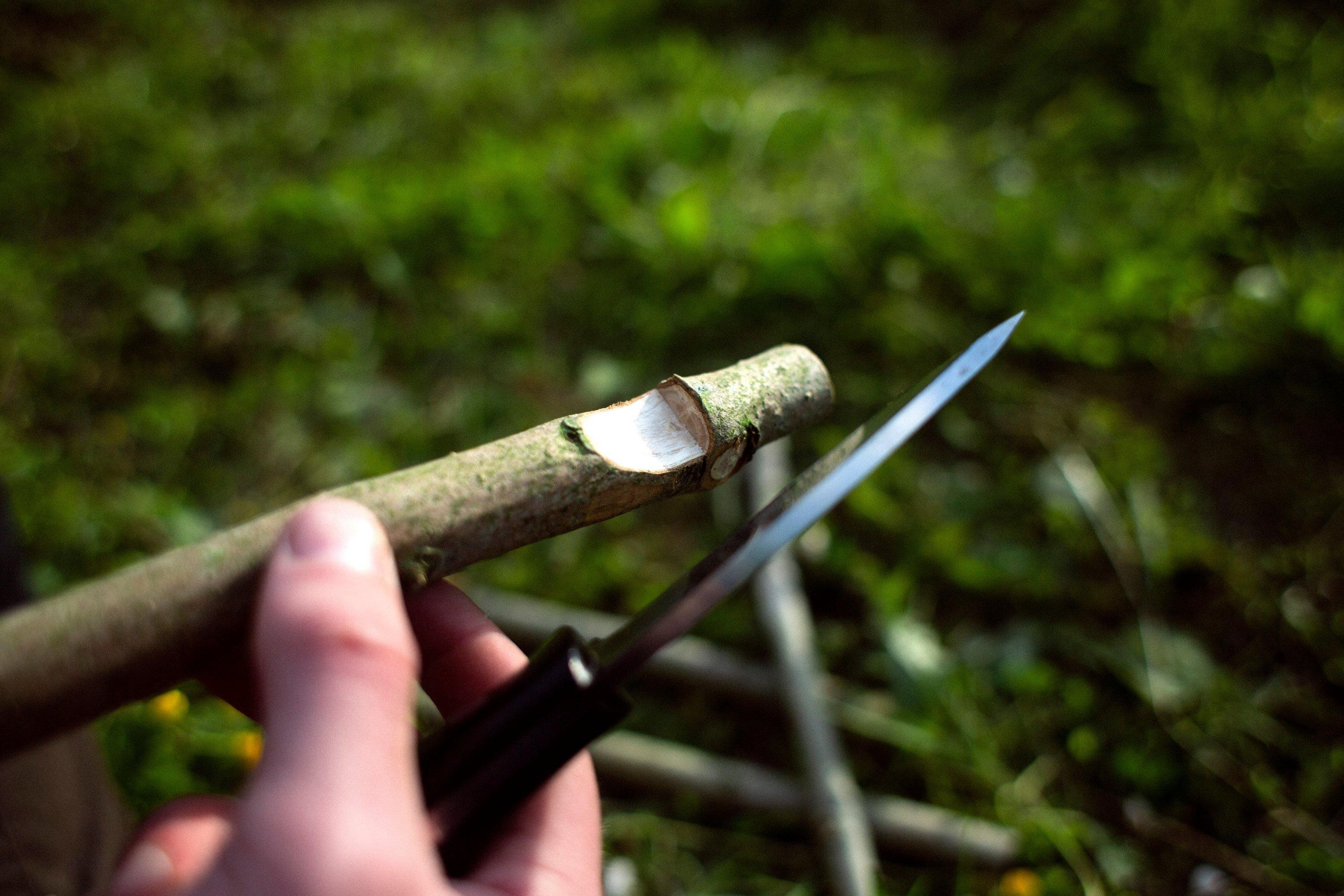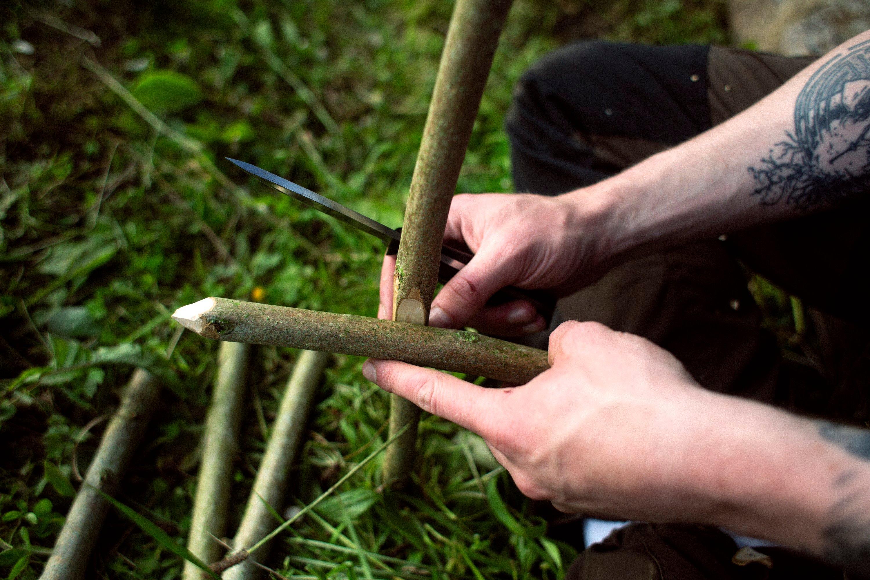 Lorsque je teste un couteau, j’aime m’amuser à concevoir des petits outils pour le bivouac. Cela demande l’utilisation de différentes techniques et la manipulation du couteau de différentes façons. Et en ce qui concerne la confection d’outils, il n’y a que l’embarras du choix. Piquets de tente, pièges, bâtons de marche...