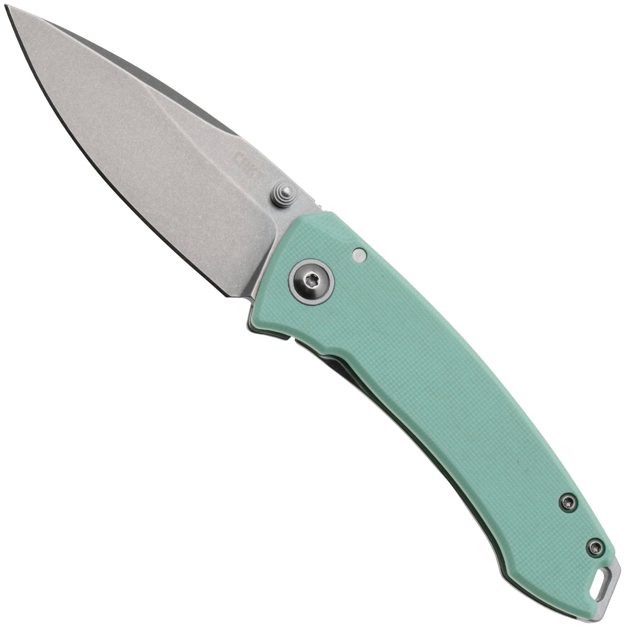 CRKT Tuna Compact 2522B Stonewashed 14C28N, Aqua Green G10, couteau de poche, Lucas Burnley design
